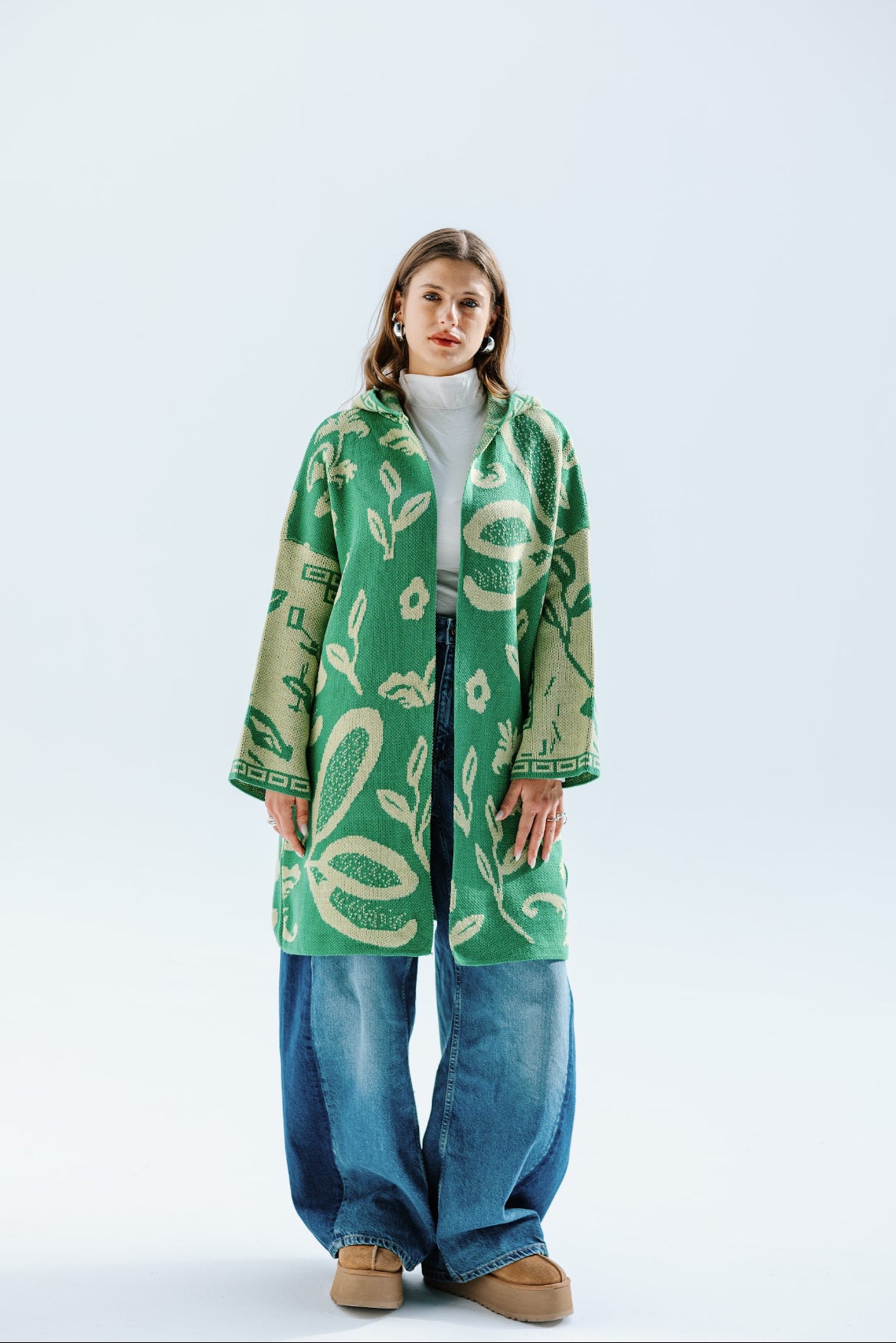Oversized knit cardigan, beautifully detailed with delicate floral and leaf patterns. Designed with a relaxed, slouchy silhouette and a generous hood, it’s the perfect blend of softness and statement — ideal for slow mornings, cool evenings, or layering with effortless style.